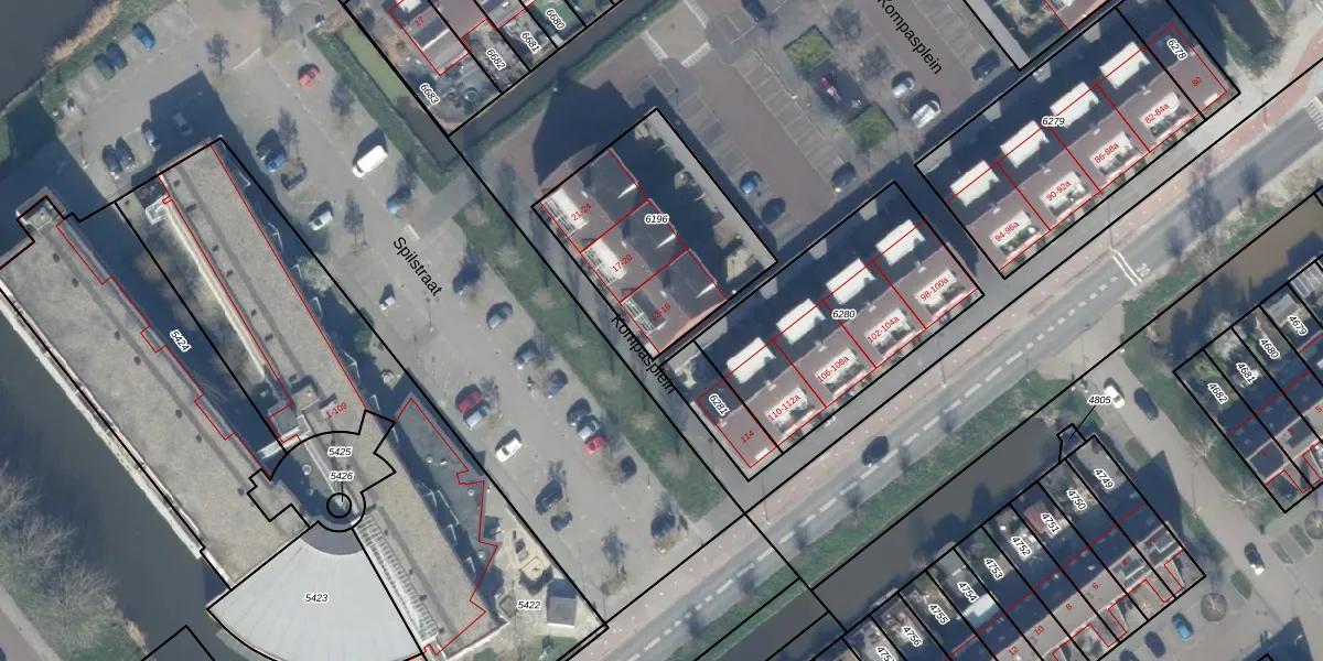 Het perceel waarop Kompasplein 13 staat heeft een oppervlakte van 710 m². Dit is een groot perceel. De perceeloppervlakte wordt geregistreerd door het Kadaster. Gedetailleerde informatie over de maten van dit perceel kunt u vinden in het rapport Kadastrale kaart met maatvoering van Kompasplein 13.