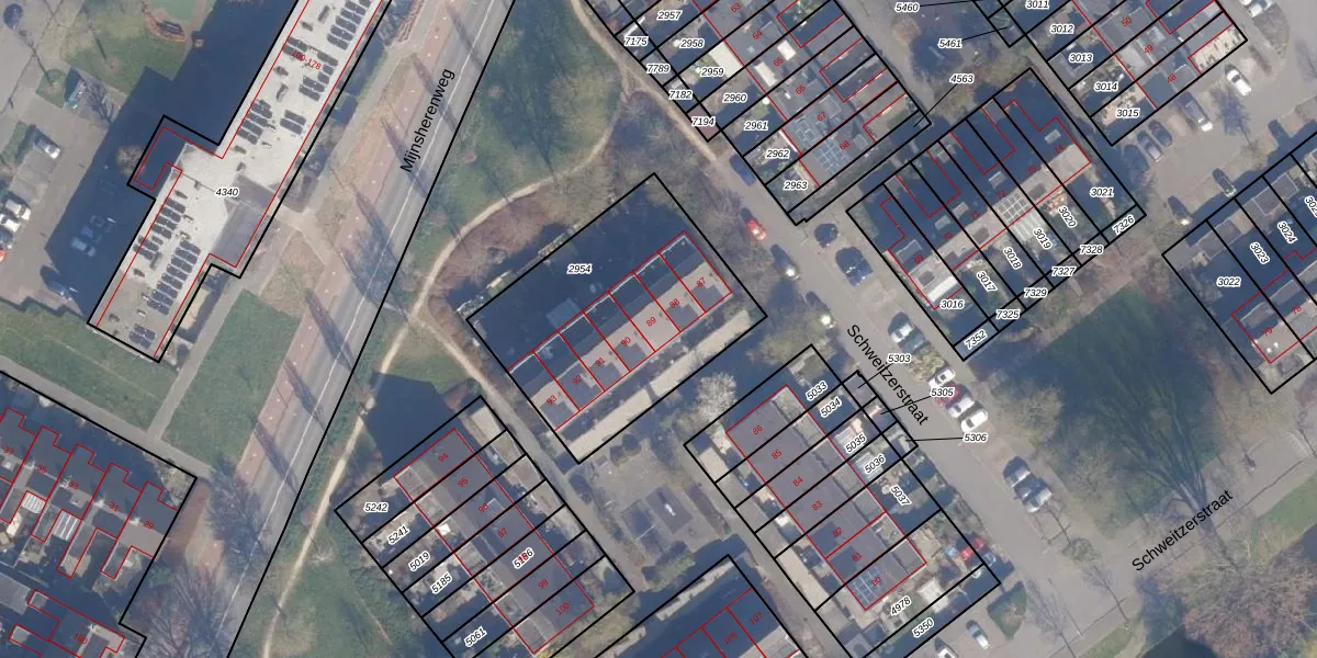 Het perceel waarop Schweitzerstraat 89 staat heeft een oppervlakte van 1006 m². Dit is een zeer groot perceel. De perceeloppervlakte wordt geregistreerd door het Kadaster. Gedetailleerde informatie over de maten van dit perceel kunt u vinden in het rapport Kadastrale kaart met maatvoering van Schweitzerstraat 89.