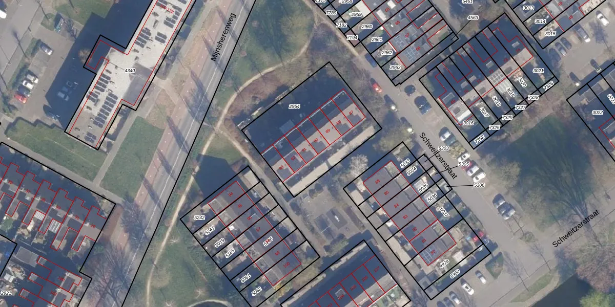 Het perceel waarop Schweitzerstraat 91 staat heeft een oppervlakte van 1006 m². Dit is een zeer groot perceel. De perceeloppervlakte wordt geregistreerd door het Kadaster. Gedetailleerde informatie over de maten van dit perceel kunt u vinden in het rapport Kadastrale kaart met maatvoering van Schweitzerstraat 91.