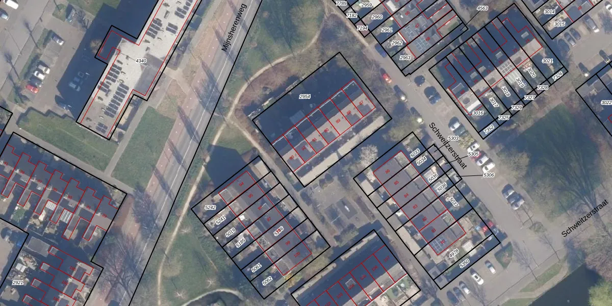 Het perceel waarop Schweitzerstraat 92 staat heeft een oppervlakte van 1006 m². Dit is een zeer groot perceel. De perceeloppervlakte wordt geregistreerd door het Kadaster. Gedetailleerde informatie over de maten van dit perceel kunt u vinden in het rapport Kadastrale kaart met maatvoering van Schweitzerstraat 92.