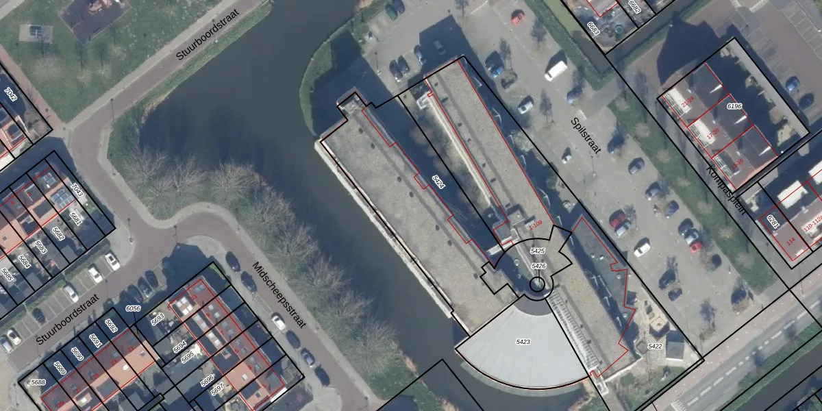 Het adres ligt op het perceel AMR03-D-5424, dat zich in de kadastrale gemeente Aalsmeer bevindt. Het perceel is kleiner dan gemiddeld in Aalsmeer. Het perceel is 1140 m² groot, terwijl het gemiddelde ligt op 1739,55 m². Het kleinste perceel in de kadastrale gemeente is 0 m² groot. De grootste perceeloppervlakte is 98,4 ha. Er zijn 25 adressen aanwezig op het perceel. In de Basisregistratie Kadaster (BRK) werden de grenzen van het perceel geregistreerd op 13-12-2007.