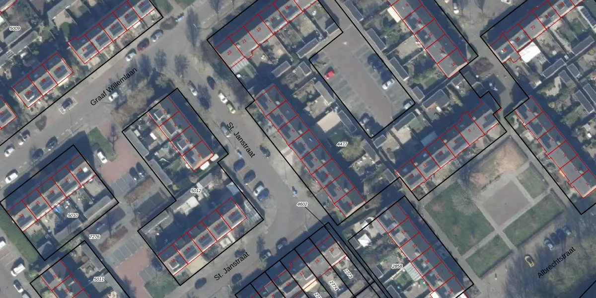St. Janstraat 7 is gelegen op kadastraal perceel AMR03D4477. Deze kadastrale aanduiding is uniek en wordt gebruikt door het Kadaster om eigendomsrechten en andere zakelijke rechten vast te leggen. Het perceel maakt onderdeel uit van de kadastrale gemeente Aalsmeer.