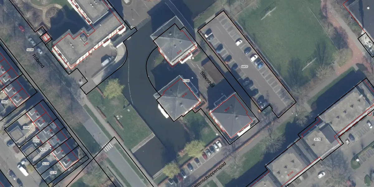 Het perceel waarop Stevinhof 15 staat heeft een oppervlakte van 1860 m². Dit is een zeer groot perceel. De perceeloppervlakte wordt geregistreerd door het Kadaster. Gedetailleerde informatie over de maten van dit perceel kunt u vinden in het rapport Kadastrale kaart met maatvoering van Stevinhof 15.