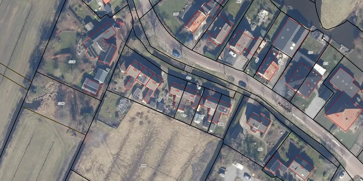 Het perceel waarop Kwadijk 109 staat heeft een oppervlakte van 918 m². Dit is een groot perceel. De perceeloppervlakte wordt geregistreerd door het Kadaster. Gedetailleerde informatie over de maten van dit perceel kunt u vinden in het rapport Kadastrale kaart met maatvoering van Kwadijk 109.