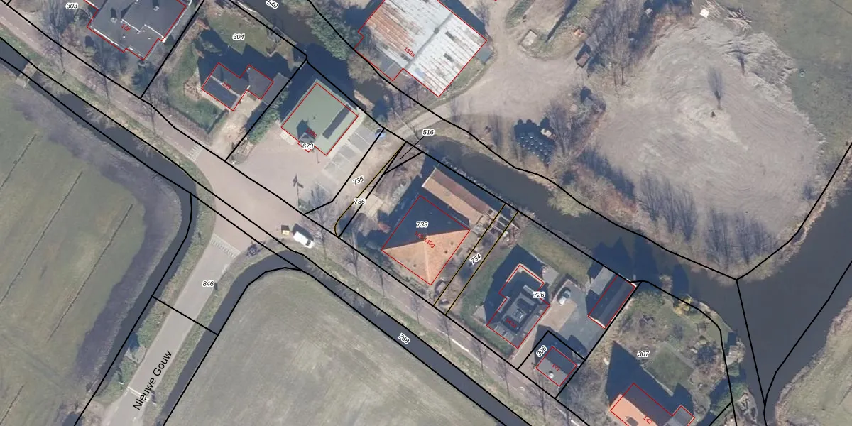 Het adres is gelegen op perceel 733 in de sectie C en de kadastrale gemeente Kwadijk. De kadastrale aanduiding is aldus KDK01-C-733. Het perceel is 765 m² groot. Dat is kleiner dan de gemiddelde perceeloppervlakte in Kwadijk, dat op 4867,12 m² ligt. De grootste perceeloppervlakte in de kadastrale gemeente is 11,8 ha. De kleinste oppervlakte bedraagt 0 m². Op het perceel liggen in totaal 8 adressen. De huidige grenzen van het perceel zijn digitaal in de Basisregistratie Kadaster (BRK) geregistreerd op 12-12-2024.