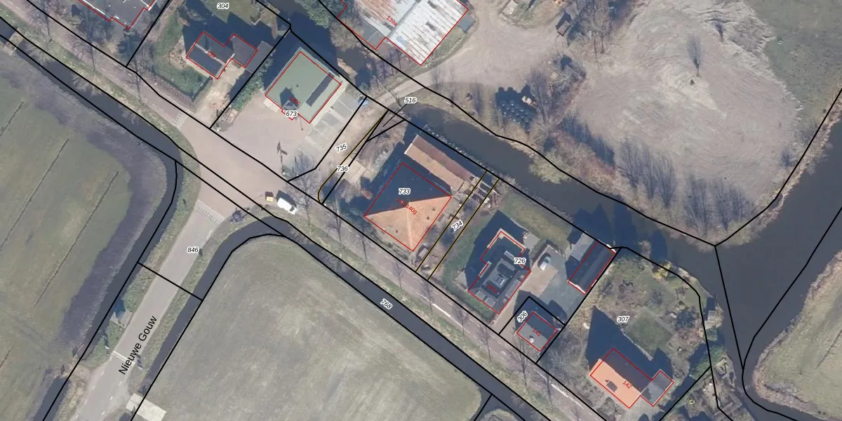 Het adres is gelegen op perceel 733 in de sectie C en de kadastrale gemeente Kwadijk. De kadastrale aanduiding is aldus KDK01-C-733. Het perceel is 765 m² groot. Dat is kleiner dan de gemiddelde perceeloppervlakte in Kwadijk, dat op 4876,34 m² ligt. De grootste perceeloppervlakte in de kadastrale gemeente is 11,8 ha. De kleinste oppervlakte bedraagt 0 m². Op het perceel liggen in totaal 8 adressen. In de Basisregistratie Kadaster (BRK) werden de grenzen van het perceel geregistreerd op 12-12-2024.