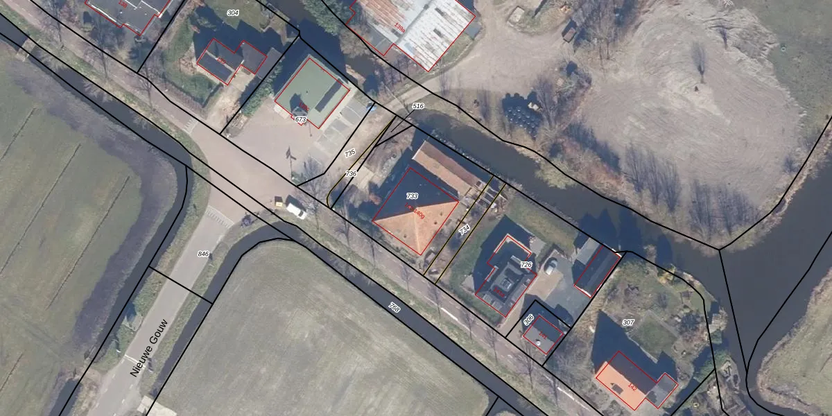 Het adres is gelegen op perceel 733 in de sectie C en de kadastrale gemeente Kwadijk. De kadastrale aanduiding is aldus KDK01-C-733. Het perceel is 765 m² groot. Dat is kleiner dan de gemiddelde perceeloppervlakte in Kwadijk, dat op 4867,12 m² ligt. De grootste perceeloppervlakte in de kadastrale gemeente is 11,8 ha. De kleinste oppervlakte bedraagt 0 m². Op het perceel liggen in totaal 8 adressen. De huidige grenzen van het perceel zijn digitaal in de Basisregistratie Kadaster (BRK) geregistreerd op 12-12-2024.