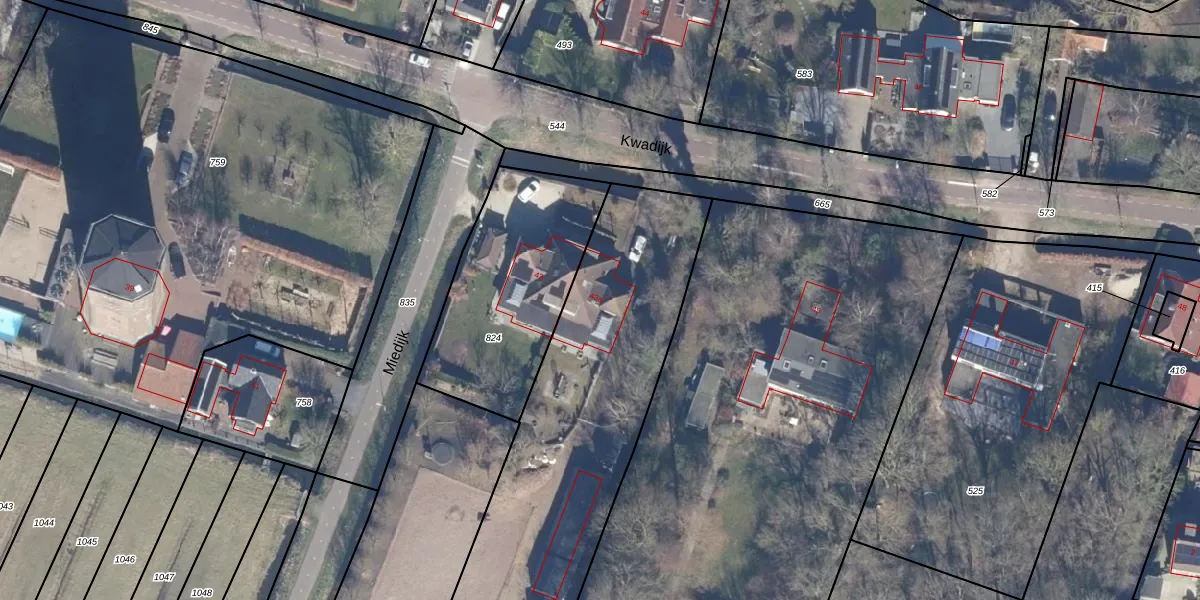 Het perceel waarop Kwadijk 43-a staat heeft een oppervlakte van 6930 m². Dit is een zeer groot perceel. De perceeloppervlakte wordt geregistreerd door het Kadaster. Gedetailleerde informatie over de maten van dit perceel kunt u vinden in het rapport Kadastrale kaart met maatvoering van Kwadijk 43-a.