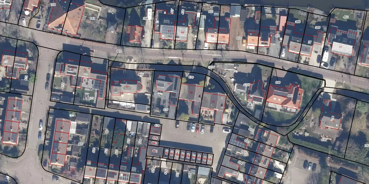 Gebruik de zoekbalk of klik op een perceel voor informatie over de adressen binnen dit perceel.