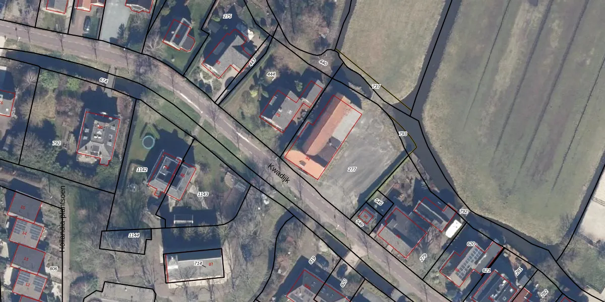 Het adres is gelegen op perceel 277 in de sectie C en de kadastrale gemeente Kwadijk. De kadastrale aanduiding is aldus KDK01-C-277. Het perceel is 1070 m² groot. Dat is kleiner dan de gemiddelde perceeloppervlakte in Kwadijk, dat op 4867,12 m² ligt. Het grootste perceel in de kadastrale gemeente is 11,8 ha. Het kleinste perceel heeft een oppervlakte van 0 m². Op het perceel liggen in totaal 13 adressen. De laatste wijziging in het de Basisregistratie Kadaster (BRK) was op 17-03-2026.