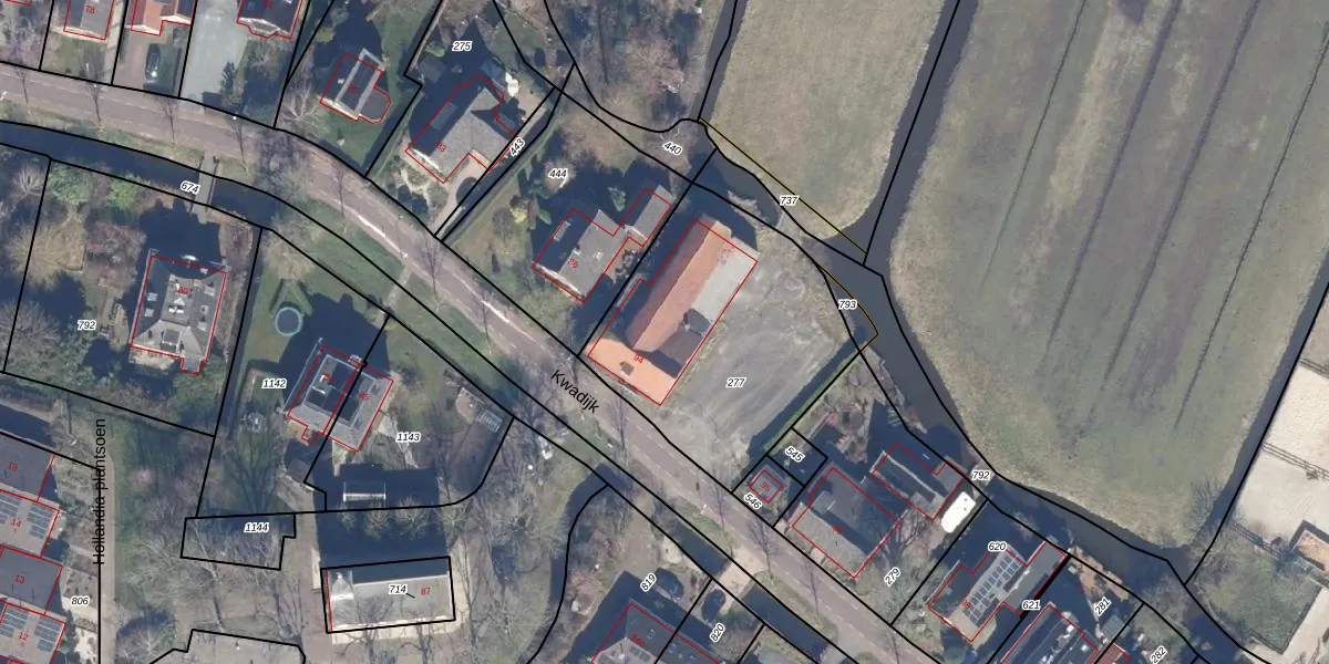 Het adres is gelegen op perceel 277 in de sectie C en de kadastrale gemeente Kwadijk. De kadastrale aanduiding is aldus KDK01-C-277. Het perceel is 1070 m² groot. Dat is kleiner dan de gemiddelde perceeloppervlakte in Kwadijk, dat op 4867,12 m² ligt. Het grootste perceel in de kadastrale gemeente is 11,8 ha. Het kleinste perceel heeft een oppervlakte van 0 m². Op het perceel liggen in totaal 13 adressen. In de Basisregistratie Kadaster (BRK) werden de grenzen van het perceel geregistreerd op 17-03-2026.