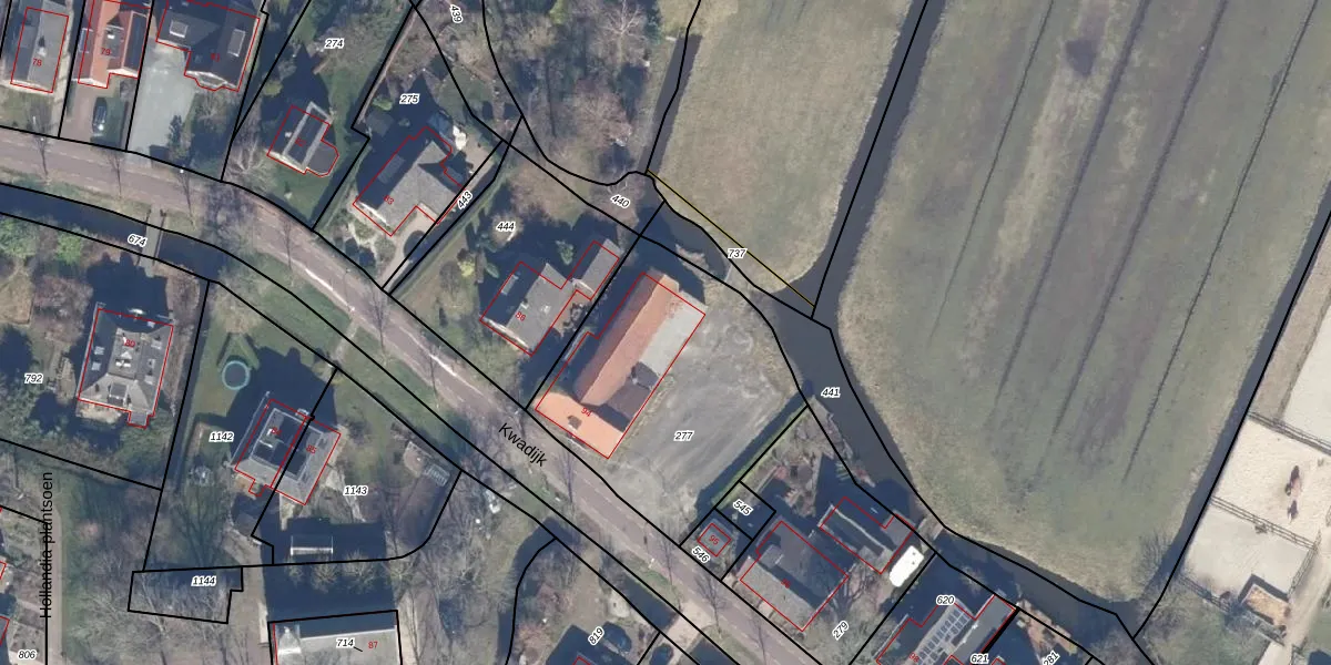 Het adres is gelegen op perceel 277 in de sectie C en de kadastrale gemeente Kwadijk. De kadastrale aanduiding is aldus KDK01-C-277. Het perceel is 1070 m² groot. Dat is kleiner dan de gemiddelde perceeloppervlakte in Kwadijk, dat op 4876,34 m² ligt. Het grootste perceel in de kadastrale gemeente is 11,8 ha. Het kleinste perceel heeft een oppervlakte van 0 m². Op het perceel liggen in totaal 13 adressen. In de Basisregistratie Kadaster (BRK) werden de grenzen van het perceel geregistreerd op 13-12-2001.