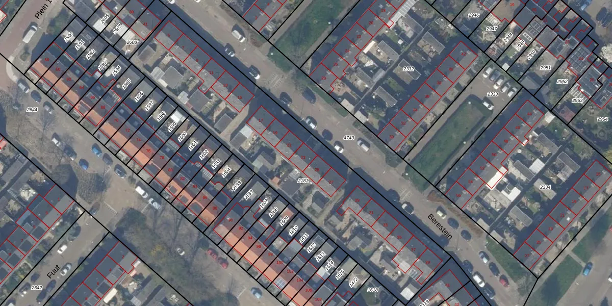 Het perceel waarop Berestein 23 staat heeft een oppervlakte van 2625 m². Dit is een zeer groot perceel. De perceeloppervlakte wordt geregistreerd door het Kadaster. Gedetailleerde informatie over de maten van dit perceel kunt u vinden in het rapport Kadastrale kaart met maatvoering van Berestein 23.