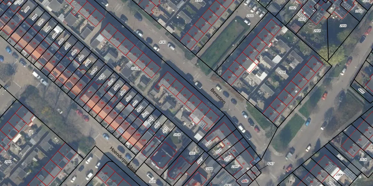 Het perceel waarop Berestein 33 staat heeft een oppervlakte van 2625 m². Dit is een zeer groot perceel. De perceeloppervlakte wordt geregistreerd door het Kadaster. Gedetailleerde informatie over de maten van dit perceel kunt u vinden in het rapport Kadastrale kaart met maatvoering van Berestein 33.