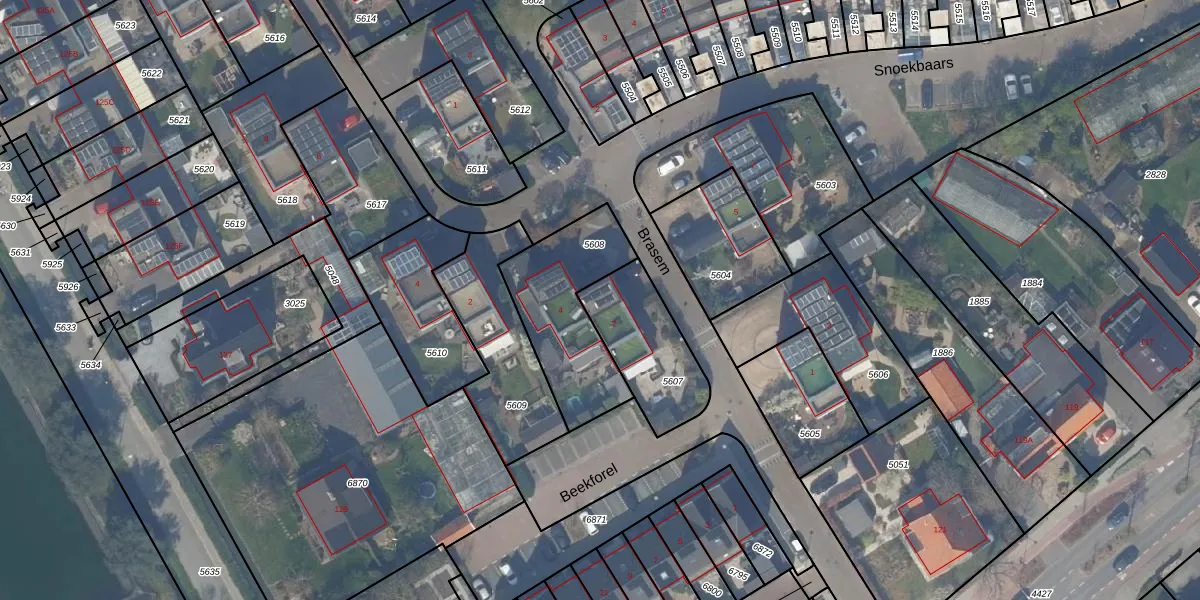 Het perceel waarop Brasem 2 staat heeft een oppervlakte van 328 m². Dit is een groot perceel. De perceeloppervlakte wordt geregistreerd door het Kadaster. Gedetailleerde informatie over de maten van dit perceel kunt u vinden in het rapport Kadastrale kaart met maatvoering van Brasem 2.