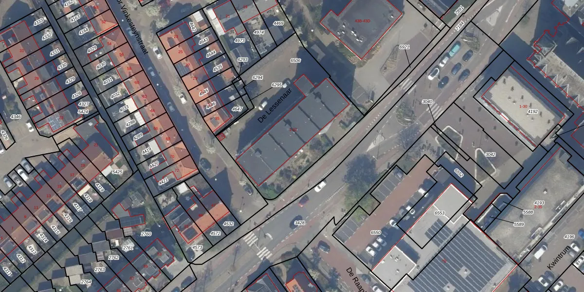 De Lessenaar 19 is gelegen op kadastraal perceel WTR00A6506. Deze kadastrale aanduiding is uniek en wordt gebruikt door het Kadaster om eigendomsrechten en andere zakelijke rechten vast te leggen. Het perceel maakt onderdeel uit van de kadastrale gemeente Wateringen.