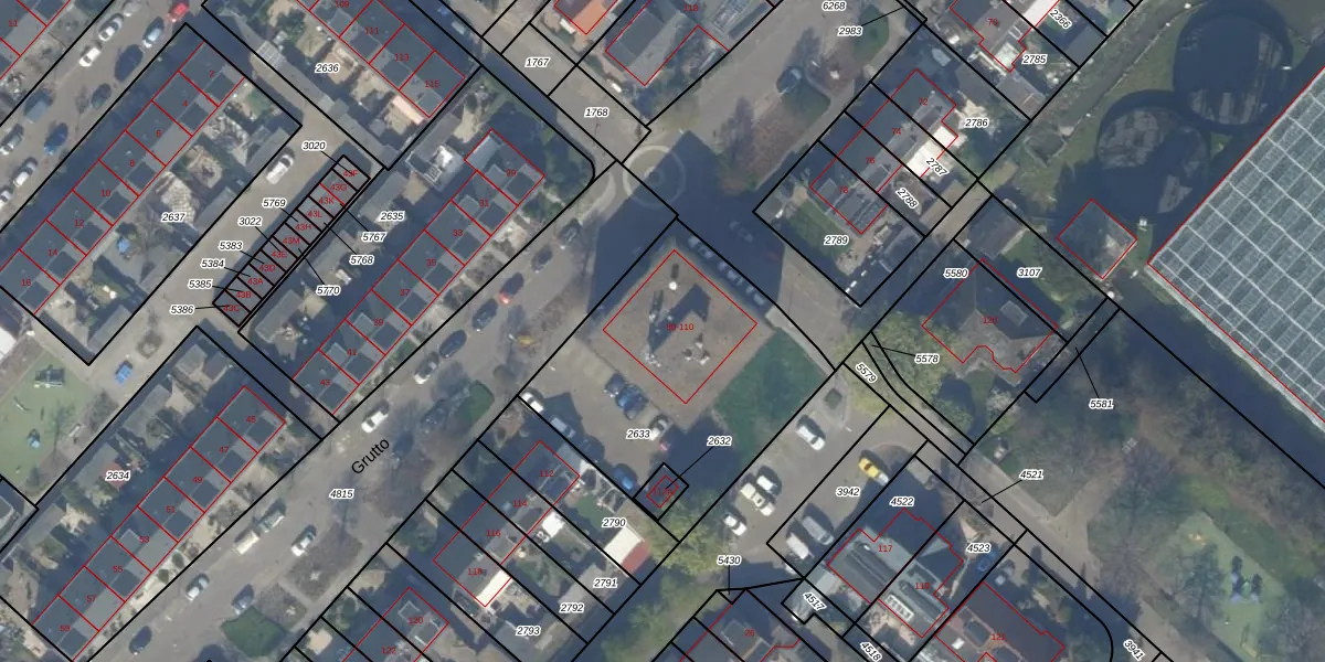 Het perceel waarop Grutto 110 staat heeft een oppervlakte van 1162 m². Dit is een zeer groot perceel. De perceeloppervlakte wordt geregistreerd door het Kadaster. Gedetailleerde informatie over de maten van dit perceel kunt u vinden in het rapport Kadastrale kaart met maatvoering van Grutto 110.