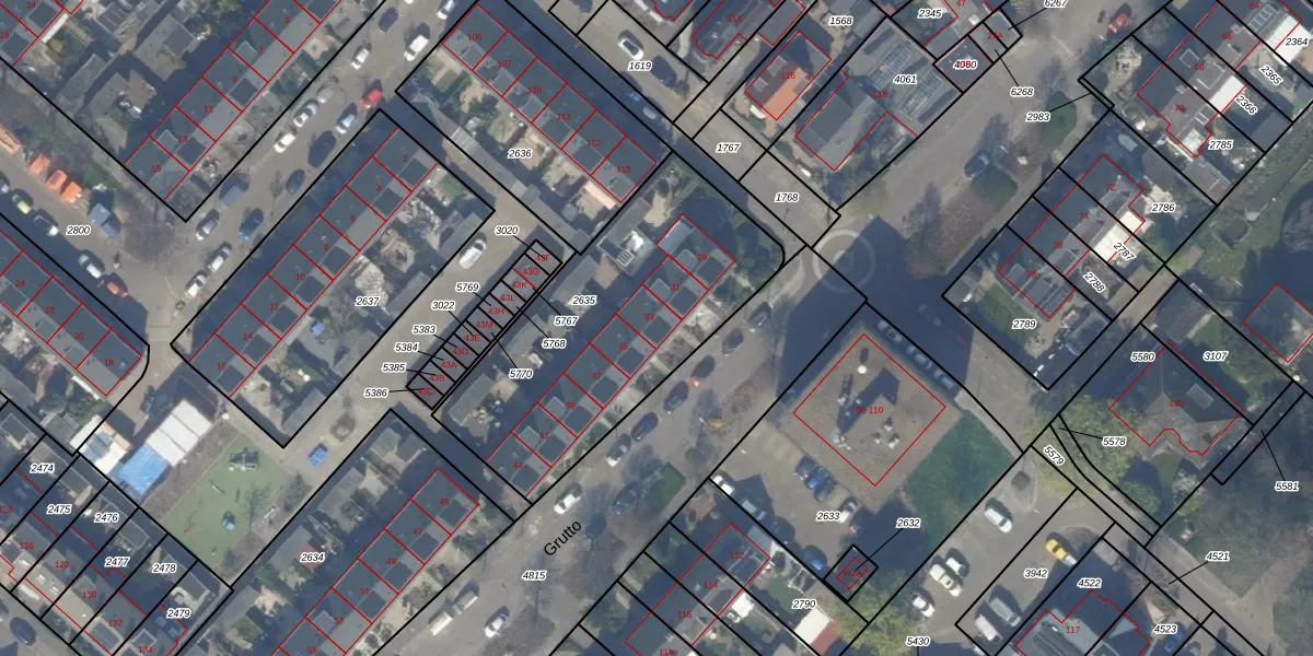 Het perceel waarop Grutto 33 staat heeft een oppervlakte van 1239 m². Dit is een zeer groot perceel. De perceeloppervlakte wordt geregistreerd door het Kadaster. Gedetailleerde informatie over de maten van dit perceel kunt u vinden in het rapport Kadastrale kaart met maatvoering van Grutto 33.