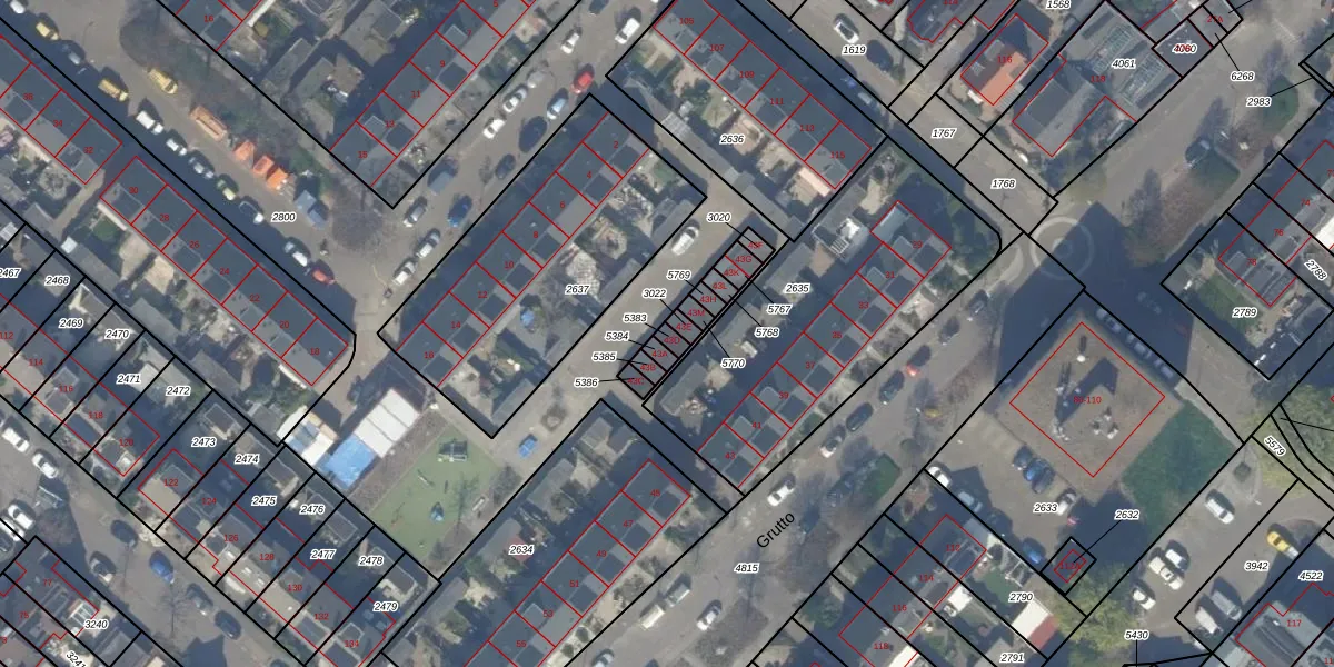 Het perceel waarop Grutto 43-D staat heeft een oppervlakte van 15 m². Dit is een klein perceel. De perceeloppervlakte wordt geregistreerd door het Kadaster. Gedetailleerde informatie over de maten van dit perceel kunt u vinden in het rapport Kadastrale kaart met maatvoering van Grutto 43-D.