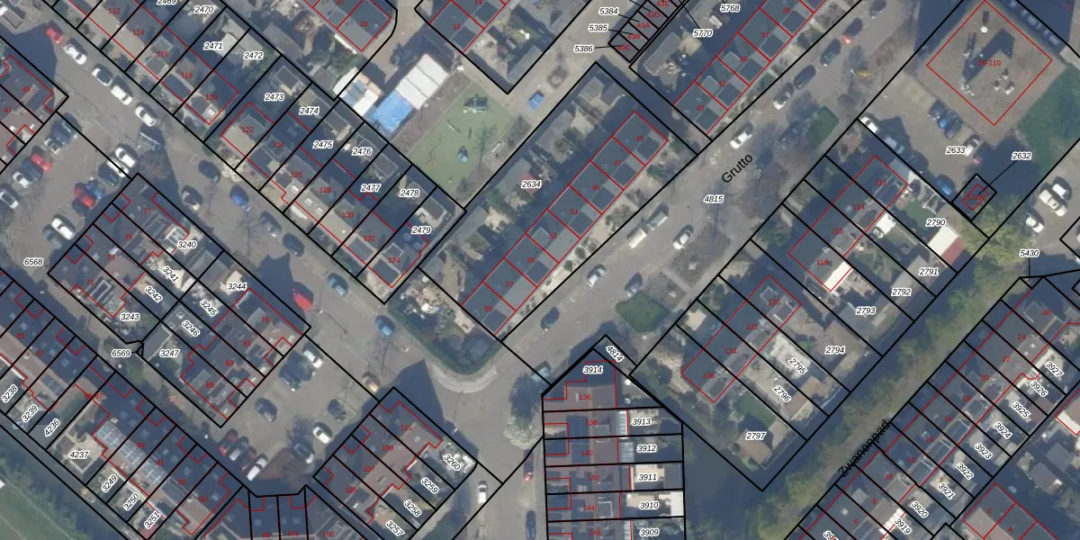 Het perceel waarop Grutto 55 staat heeft een oppervlakte van 1182 m². Dit is een zeer groot perceel. De perceeloppervlakte wordt geregistreerd door het Kadaster. Gedetailleerde informatie over de maten van dit perceel kunt u vinden in het rapport Kadastrale kaart met maatvoering van Grutto 55.