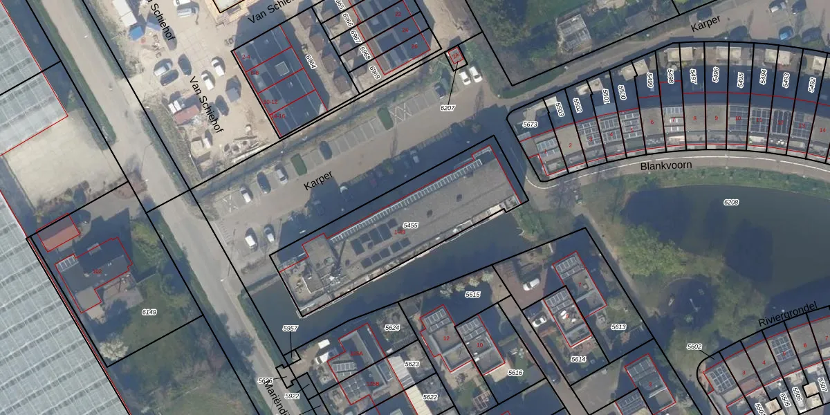 Karper 5 is gelegen op kadastraal perceel WTR00C5455. Deze kadastrale aanduiding is uniek en wordt gebruikt door het Kadaster om eigendomsrechten en andere zakelijke rechten vast te leggen. Het perceel maakt onderdeel uit van de kadastrale gemeente Wateringen.