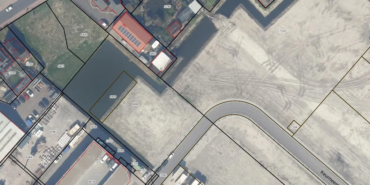 Het perceel waarop Keurmeester 45 staat heeft een oppervlakte van 6924 m². Dit is een zeer groot perceel. De perceeloppervlakte wordt geregistreerd door het Kadaster. Gedetailleerde informatie over de maten van dit perceel kunt u vinden in het rapport Kadastrale kaart met maatvoering van Keurmeester 45.