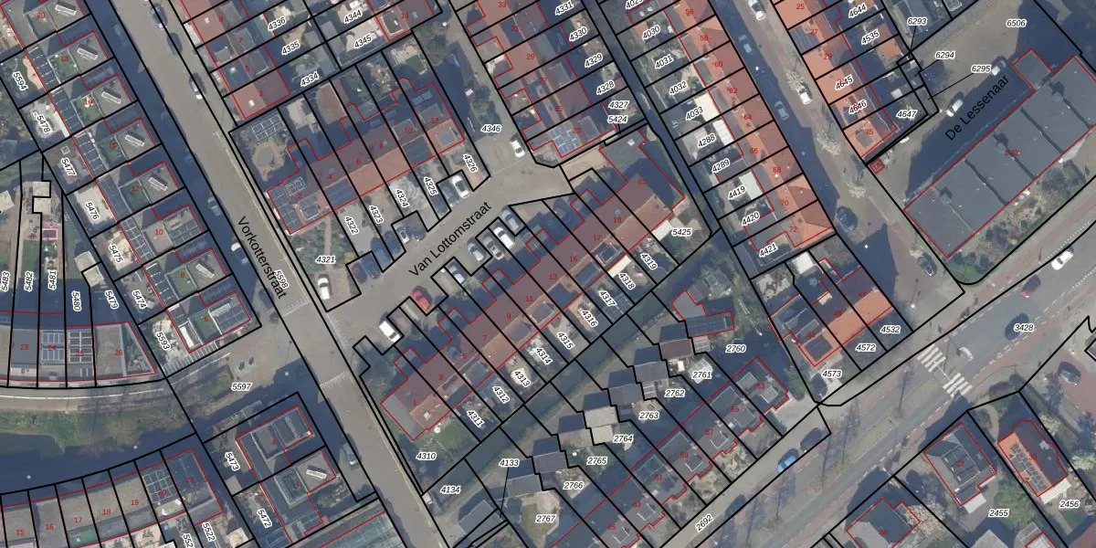 Het perceel waarop Van Lottomstraat 13 staat heeft een oppervlakte van 143 m². Dit is een middelgroot perceel. De perceeloppervlakte wordt geregistreerd door het Kadaster. Gedetailleerde informatie over de maten van dit perceel kunt u vinden in het rapport Kadastrale kaart met maatvoering van Van Lottomstraat 13.
