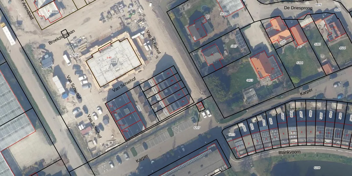 Het adres ligt op het perceel WTR00-C-6967, dat zich in de kadastrale gemeente Wateringen bevindt. Het perceel is kleiner dan gemiddeld in Wateringen. Het perceel is 101 m² groot, terwijl het gemiddelde ligt op 1045,63 m². De grootste perceeloppervlakte in de kadastrale gemeente is 8,7 ha. De kleinste oppervlakte bedraagt 0 m². Dit is het enige adres dat aanwezig is op het perceel. De laatste wijziging in het de Basisregistratie Kadaster (BRK) was op 05-01-2026.