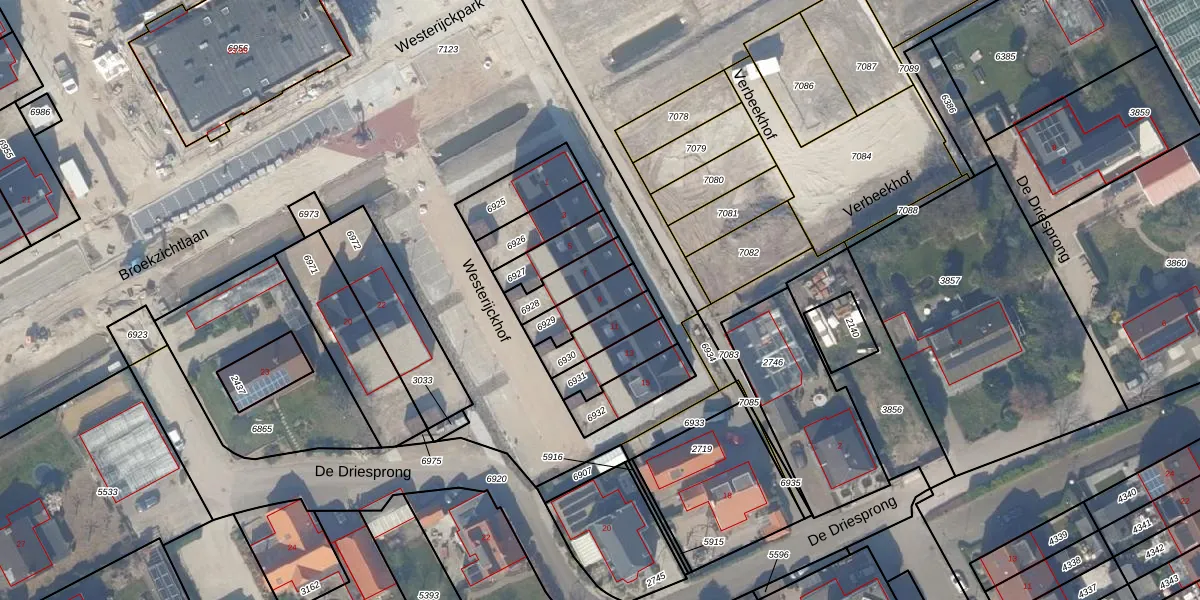 Gebruik de zoekbalk of klik op een perceel voor informatie over de adressen binnen dit perceel.