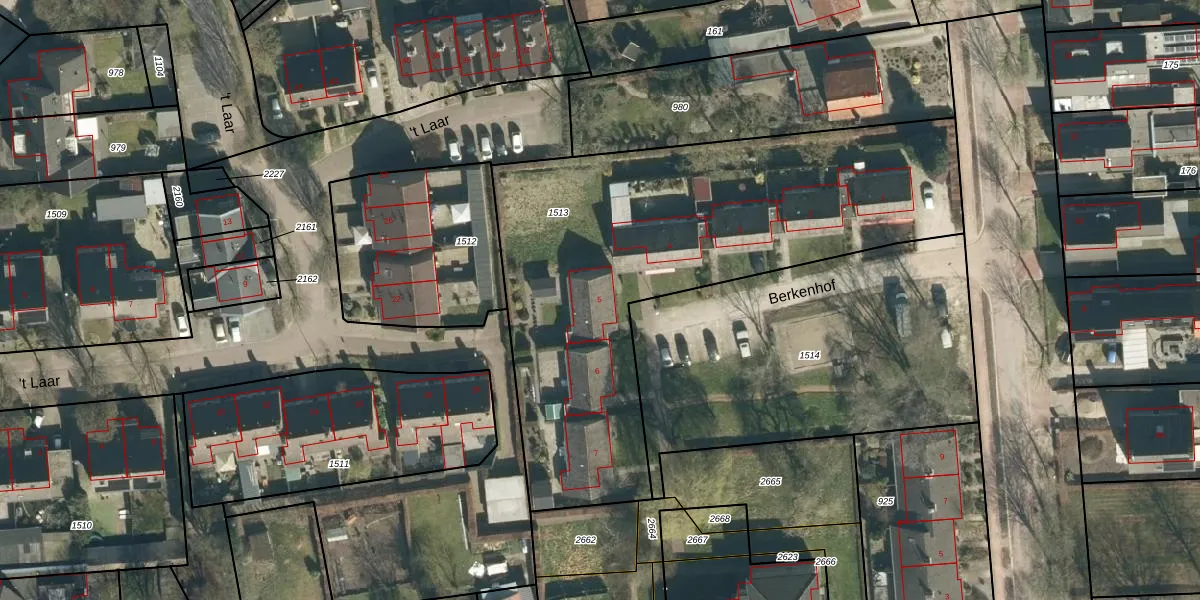 Het perceel waarop Berkenhof 5 staat heeft een oppervlakte van 2432 m². Dit is een zeer groot perceel. De perceeloppervlakte wordt geregistreerd door het Kadaster. Gedetailleerde informatie over de maten van dit perceel kunt u vinden in het rapport Kadastrale kaart met maatvoering van Berkenhof 5.