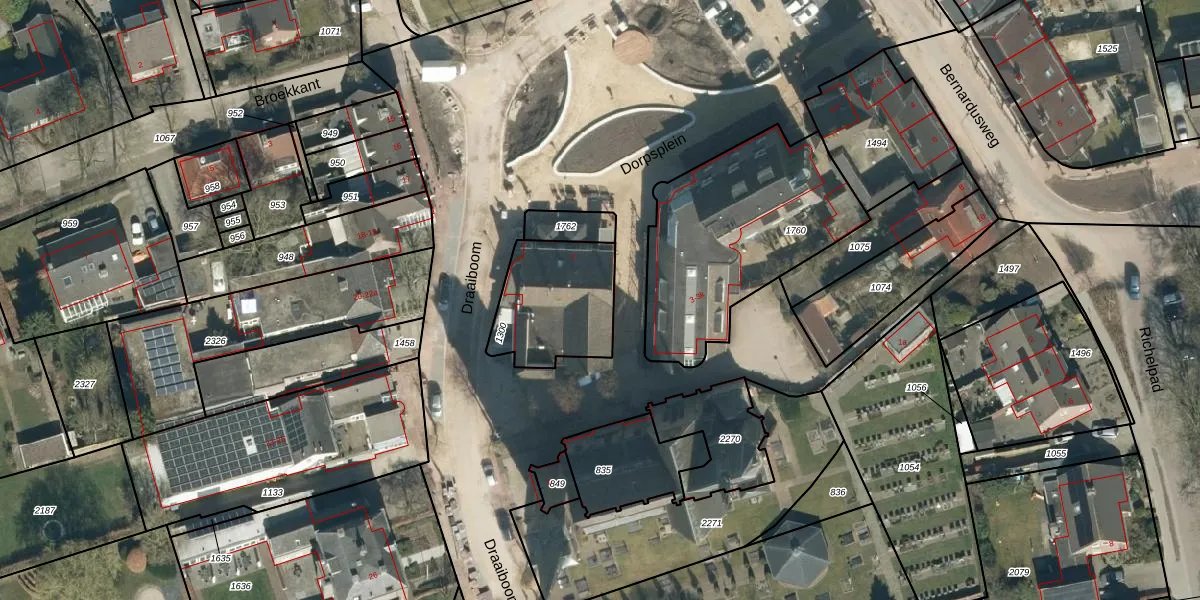 Het perceel waarop Dorpsplein 2-b staat heeft een oppervlakte van 375 m². Dit is een groot perceel. De perceeloppervlakte wordt geregistreerd door het Kadaster. Gedetailleerde informatie over de maten van dit perceel kunt u vinden in het rapport Kadastrale kaart met maatvoering van Dorpsplein 2-b.