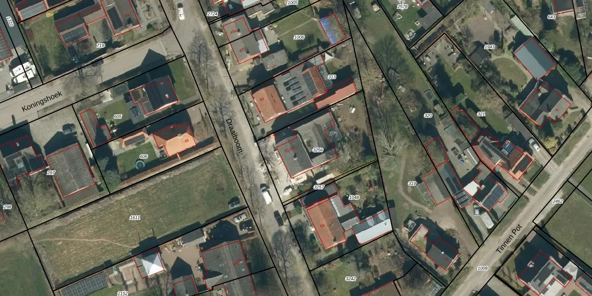 Het perceel waarop Draaiboom 53-A staat heeft een oppervlakte van 857 m². Dit is een groot perceel. De perceeloppervlakte wordt geregistreerd door het Kadaster. Gedetailleerde informatie over de maten van dit perceel kunt u vinden in het rapport Kadastrale kaart met maatvoering van Draaiboom 53-A.