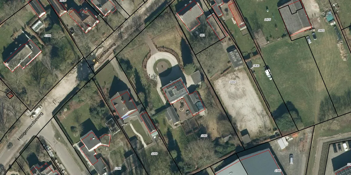 Hoogemierdseweg 13 is gelegen op kadastraal perceel MDE02H1060. Deze kadastrale aanduiding is uniek en wordt gebruikt door het Kadaster om eigendomsrechten en andere zakelijke rechten vast te leggen. Het perceel maakt onderdeel uit van de kadastrale gemeente Hooge en Lage Mierde.