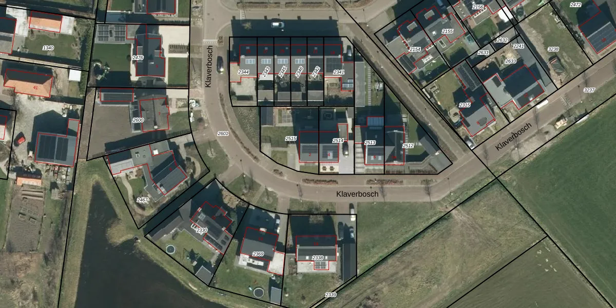 Het perceel waarop Klaverbosch 2 staat heeft een oppervlakte van 372 m². Dit is een groot perceel. De perceeloppervlakte wordt geregistreerd door het Kadaster. Gedetailleerde informatie over de maten van dit perceel kunt u vinden in het rapport Kadastrale kaart met maatvoering van Klaverbosch 2.
