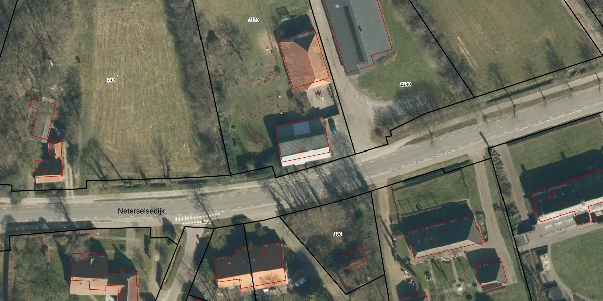 Het perceel waarop Neterselsedijk 19-a staat heeft een oppervlakte van 3410 m². Dit is een zeer groot perceel. De perceeloppervlakte wordt geregistreerd door het Kadaster. Gedetailleerde informatie over de maten van dit perceel kunt u vinden in het rapport Kadastrale kaart met maatvoering van Neterselsedijk 19-a.