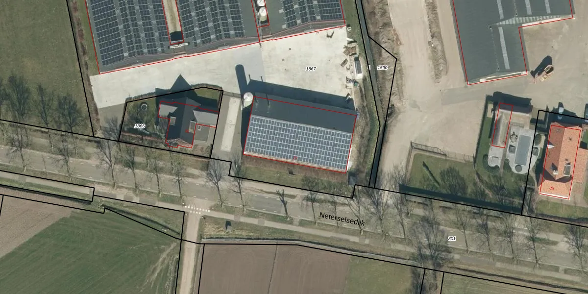 Neterselsedijk 37 is gelegen op kadastraal perceel MDE02K1867. Deze kadastrale aanduiding is uniek en wordt gebruikt door het Kadaster om eigendomsrechten en andere zakelijke rechten vast te leggen. Het perceel maakt onderdeel uit van de kadastrale gemeente Hooge en Lage Mierde.