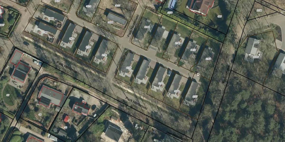 Het perceel waarop Park Hertenwei 222 staat heeft een oppervlakte van 7460 m². Dit is een zeer groot perceel. De perceeloppervlakte wordt geregistreerd door het Kadaster. Gedetailleerde informatie over de maten van dit perceel kunt u vinden in het rapport Kadastrale kaart met maatvoering van Park Hertenwei 222.