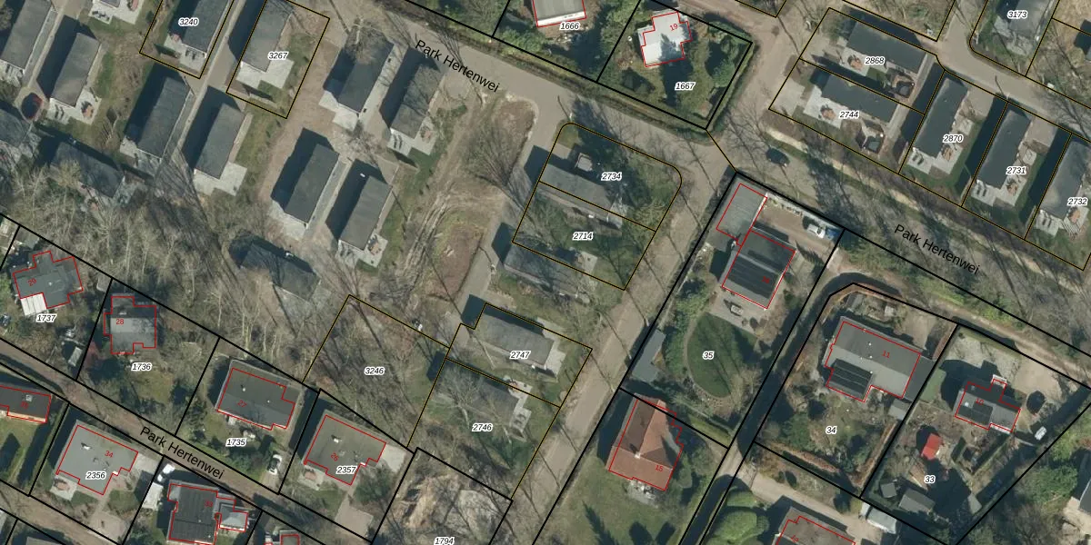 Het perceel waarop Park Hertenwei 263 staat heeft een oppervlakte van 1,4 ha. Dit is een zeer groot perceel. De perceeloppervlakte wordt geregistreerd door het Kadaster. Gedetailleerde informatie over de maten van dit perceel kunt u vinden in het rapport Kadastrale kaart met maatvoering van Park Hertenwei 263.