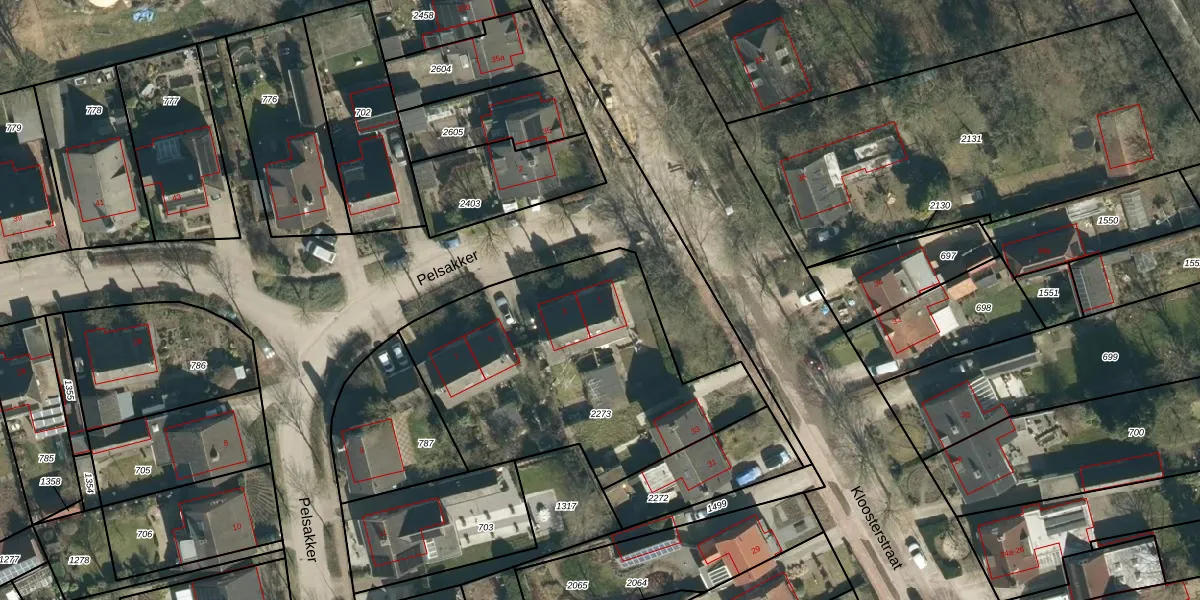 Pelsakker 1 is gelegen op kadastraal perceel MDE02H2273. Deze kadastrale aanduiding is uniek en wordt gebruikt door het Kadaster om eigendomsrechten en andere zakelijke rechten vast te leggen. Het perceel maakt onderdeel uit van de kadastrale gemeente Hooge en Lage Mierde.