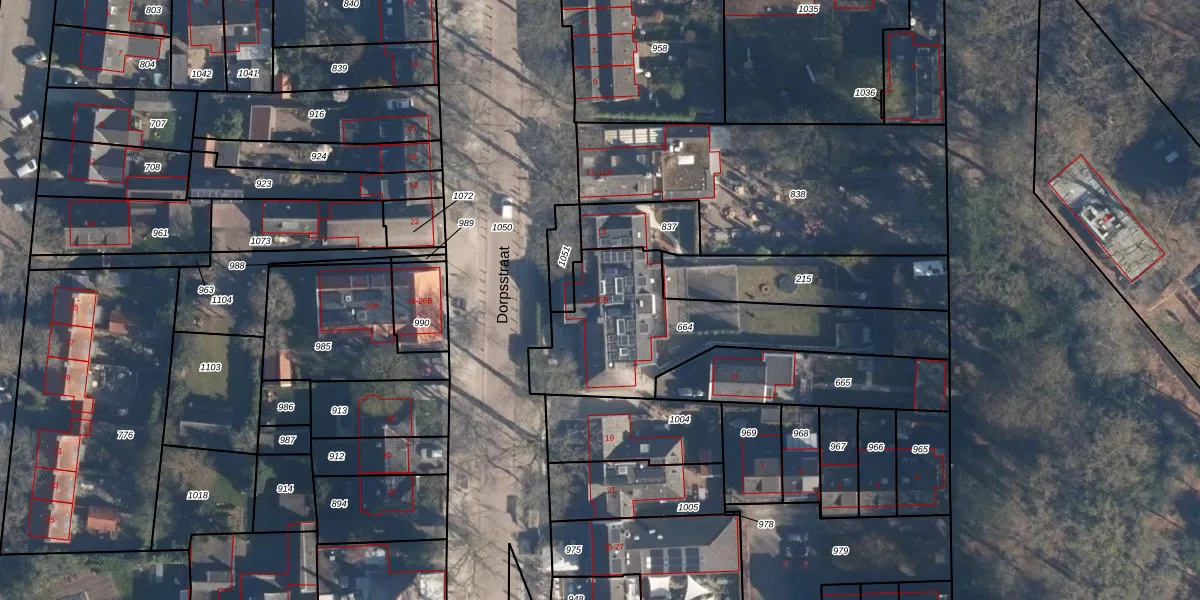 Het perceel waarop Dorpsstraat 15 staat heeft een oppervlakte van 845 m². Dit is een groot perceel. De perceeloppervlakte wordt geregistreerd door het Kadaster. Gedetailleerde informatie over de maten van dit perceel kunt u vinden in het rapport Kadastrale kaart met maatvoering van Dorpsstraat 15.