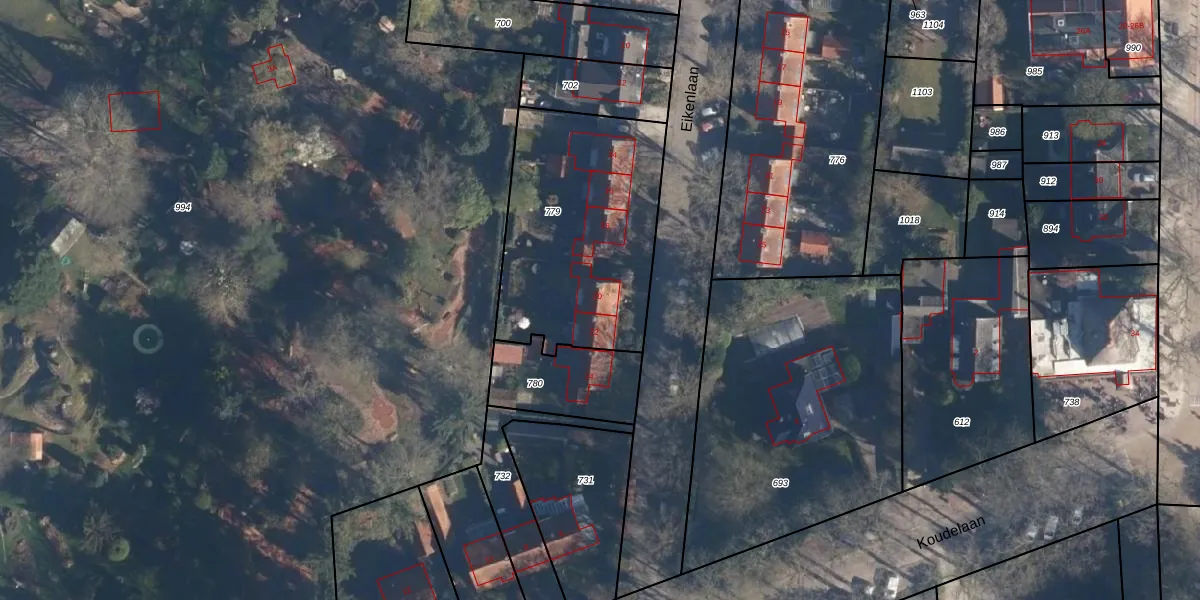 Het perceel waarop Eikenlaan 20 staat heeft een oppervlakte van 967 m². Dit is een groot perceel. De perceeloppervlakte wordt geregistreerd door het Kadaster. Gedetailleerde informatie over de maten van dit perceel kunt u vinden in het rapport Kadastrale kaart met maatvoering van Eikenlaan 20.