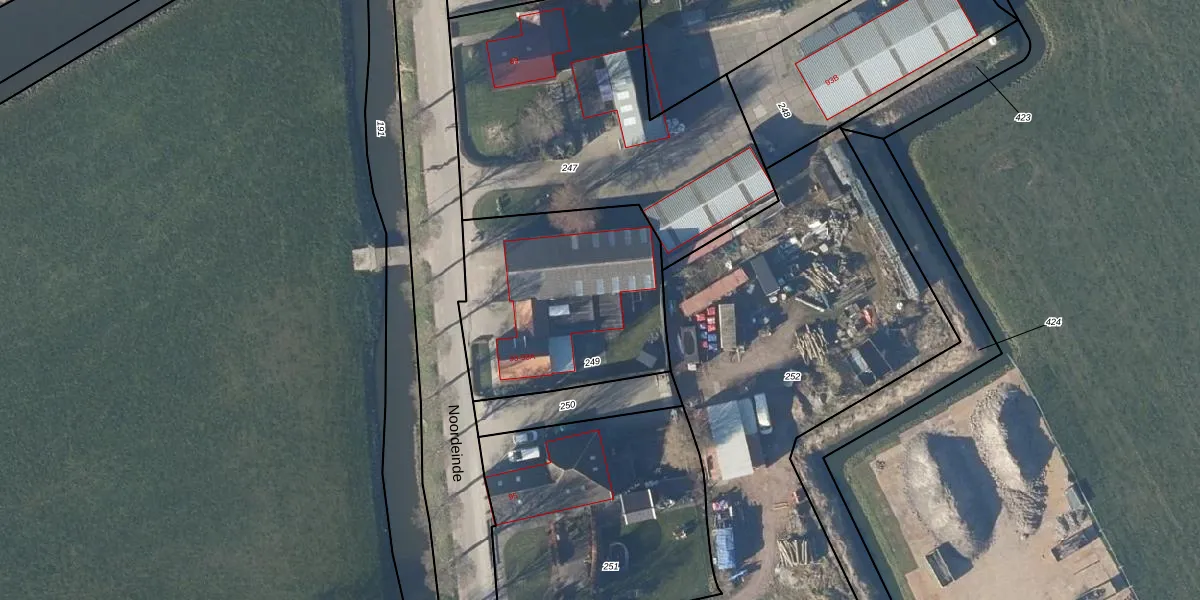 Het perceel waarop Noordeinde 93 staat heeft een oppervlakte van 960 m². Dit is een groot perceel. De perceeloppervlakte wordt geregistreerd door het Kadaster. Gedetailleerde informatie over de maten van dit perceel kunt u vinden in het rapport Kadastrale kaart met maatvoering van Noordeinde 93.