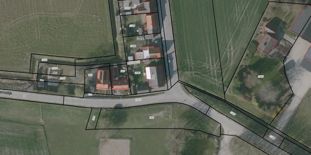 Het adres is gelegen op perceel 2040 in de sectie E en de kadastrale gemeente Hontenisse. De kadastrale aanduiding is aldus HTN01-E-2040. De gemiddelde perceelgrootte in Hontenisse is 1,2 ha. Dit perceel is kleiner: de perceeloppervlakte bedraagt 520 m². De grootste perceeloppervlakte in de kadastrale gemeente is 18,97 km². De kleinste oppervlakte bedraagt 0 m². Op het perceel bevinden zich geen andere adressen. In de Basisregistratie Kadaster (BRK) werden de grenzen van het perceel geregistreerd op 08-04-2003.