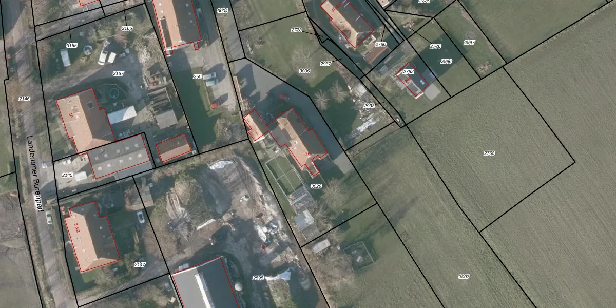 Het perceel waarop Landerum 26 staat heeft een oppervlakte van 1395 m². Dit is een zeer groot perceel. De perceeloppervlakte wordt geregistreerd door het Kadaster. Gedetailleerde informatie over de maten van dit perceel kunt u vinden in het rapport Kadastrale kaart met maatvoering van Landerum 26.