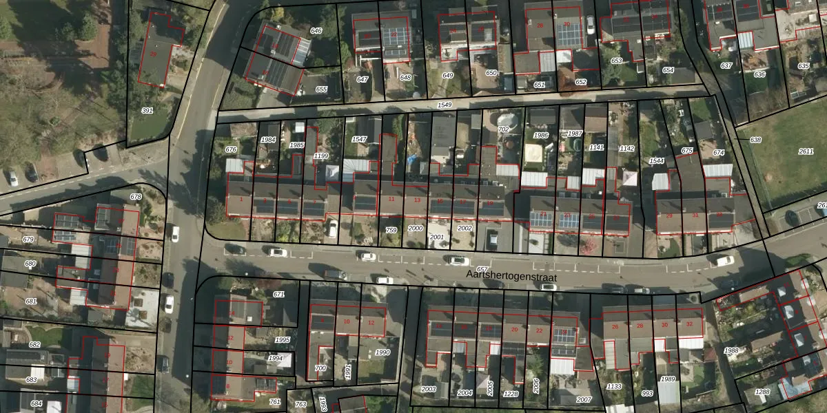 Aartshertogenstraat 13 is gelegen op kadastraal perceel SBG01E2000. Deze kadastrale aanduiding is uniek en wordt gebruikt door het Kadaster om eigendomsrechten en andere zakelijke rechten vast te leggen. Het perceel maakt onderdeel uit van de kadastrale gemeente Schaesberg.