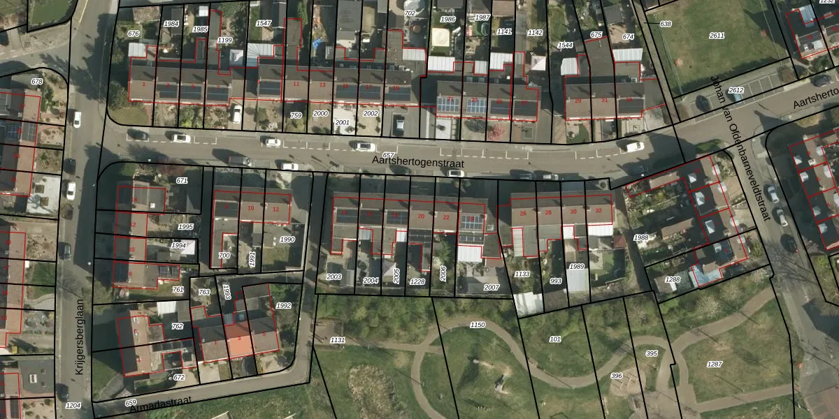 Het perceel waarop Aartshertogenstraat 20 staat heeft een oppervlakte van 168 m². Dit is een middelgroot perceel. De perceeloppervlakte wordt geregistreerd door het Kadaster. Gedetailleerde informatie over de maten van dit perceel kunt u vinden in het rapport Kadastrale kaart met maatvoering van Aartshertogenstraat 20.