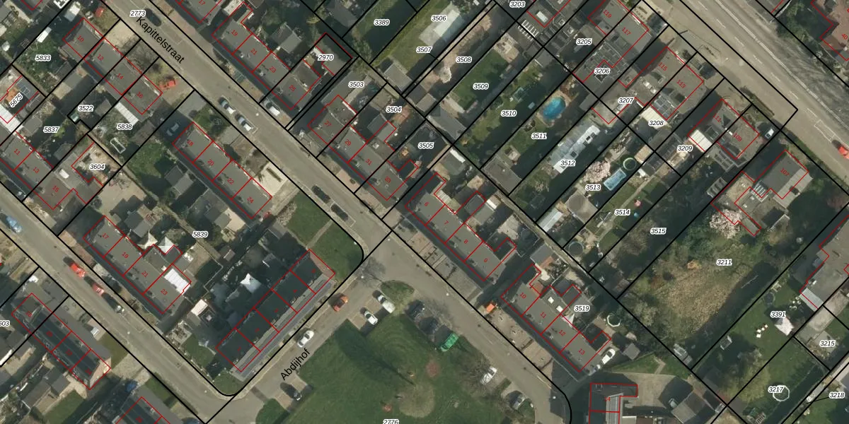 Het perceel waarop Abdijhof 6 staat heeft een oppervlakte van 2265 m². Dit is een zeer groot perceel. De perceeloppervlakte wordt geregistreerd door het Kadaster. Gedetailleerde informatie over de maten van dit perceel kunt u vinden in het rapport Kadastrale kaart met maatvoering van Abdijhof 6.