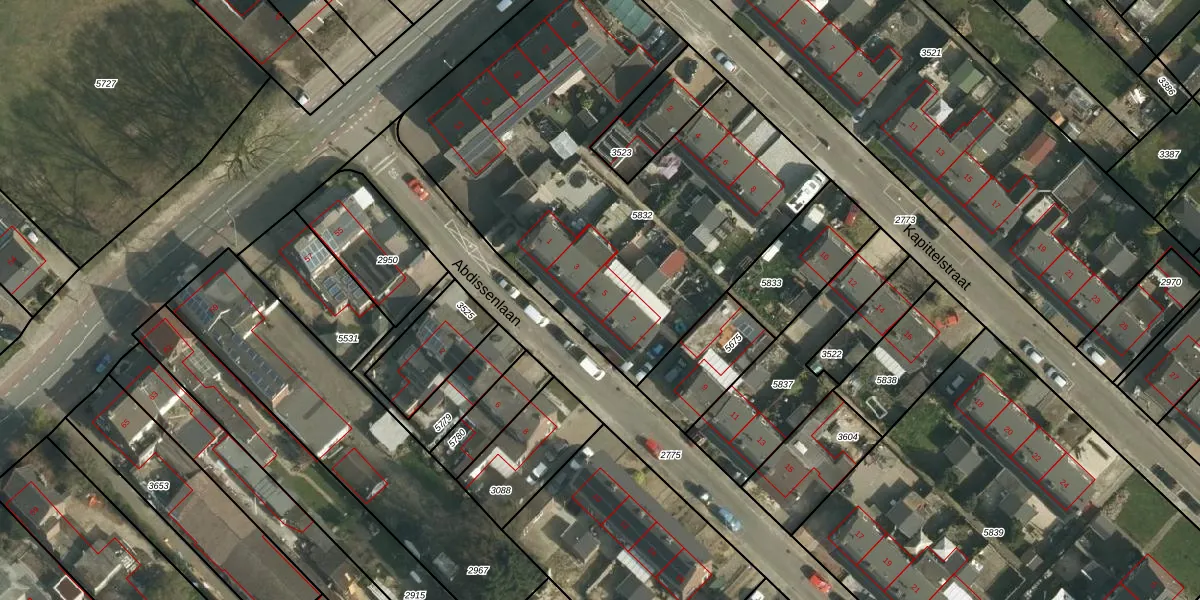 Het perceel waarop Abdissenlaan 5 staat heeft een oppervlakte van 2489 m². Dit is een zeer groot perceel. De perceeloppervlakte wordt geregistreerd door het Kadaster. Gedetailleerde informatie over de maten van dit perceel kunt u vinden in het rapport Kadastrale kaart met maatvoering van Abdissenlaan 5.