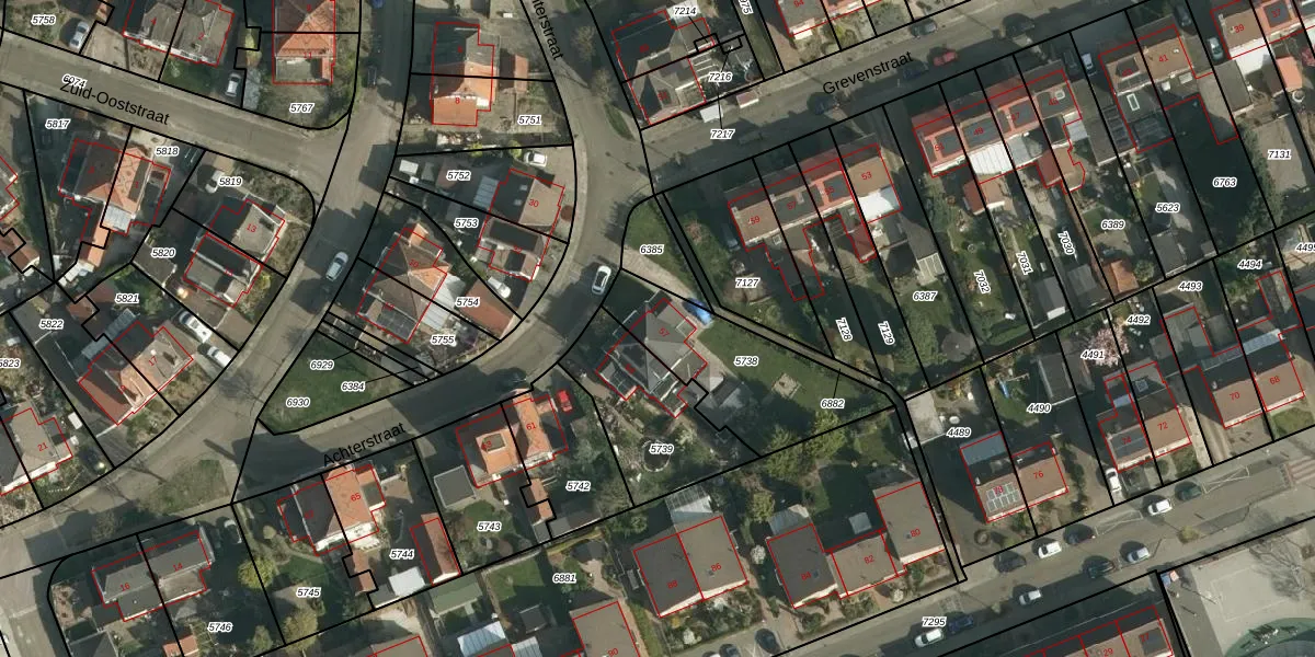 Gebruik de zoekbalk of klik op een perceel voor informatie over de adressen binnen dit perceel.
