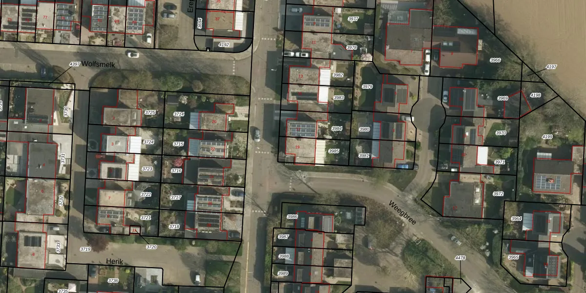 Gebruik de zoekbalk of klik op een perceel voor informatie over de adressen binnen dit perceel.